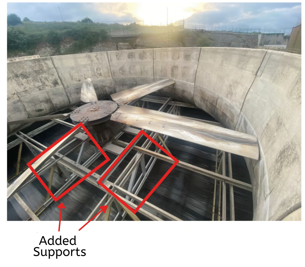 - During field observations, the presence of a ‘structural vibration’ problem affecting the cooling tower base was identified.