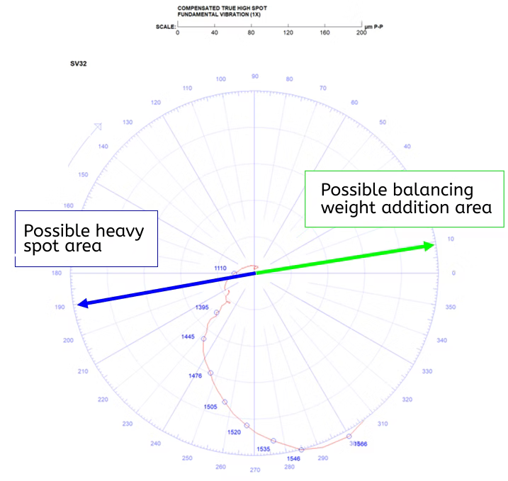 - Following the removal of the correction weights, an acceleration test revealed that the vibration levels decreased from a Pk-Pk value of 200 microns to a Pk-Pk value of approximately 80 microns.