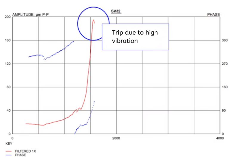 - The data collected during the initial acceleration phase was examined, and it was determined that the shaft sensors in the LP bearings were causing the trip condition.